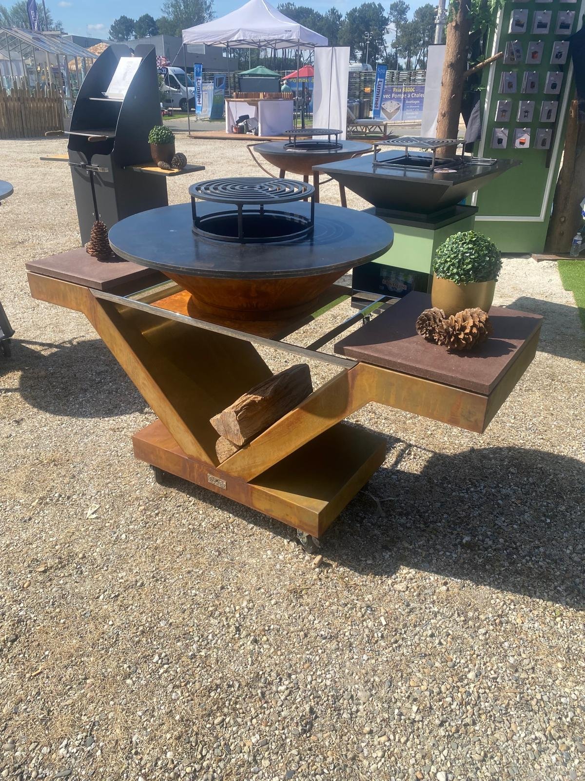 Pour cette première édition, nous avons fait le choix d’exposer plusieurs de nos modèles phares. Chaque pièce a été sélectionnée avec soin afin de représenter la diversité de notre gamme, que ce soit en termes de tailles, de matériaux ou de finitions. Nos braseros en acier Corten ont particulièrement séduit les amateurs de design brut et naturel, tandis que nos versions peintes en noir ou ivoire ont plu aux passionnés de décoration contemporaine.