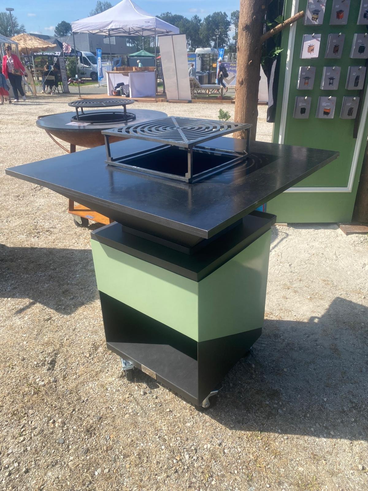 L’acier utilisé est traité pour résister aux hautes températures, aux conditions climatiques extrêmes, tout en conservant son esthétique élégante. Chaque détail est travaillé : soudures, finitions, éléments modulables. Nous proposons également des accessoires sur-mesure : grilles de cuisson, couvercles, supports de bûches, etc.