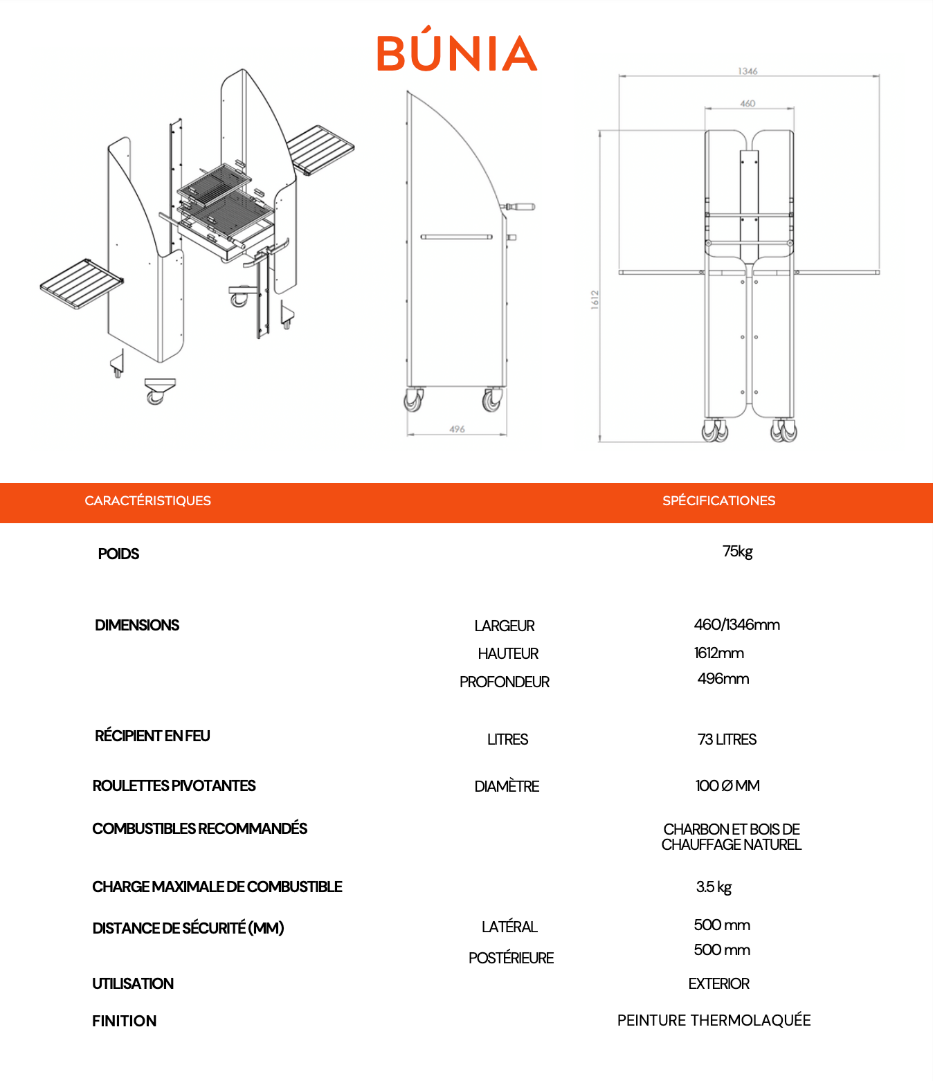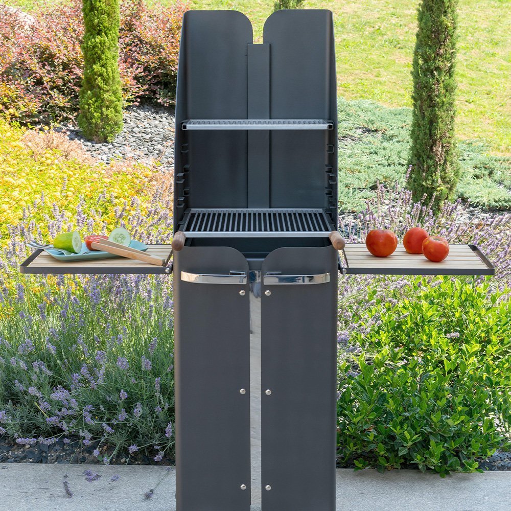 Le barbecue Búnia est un excellent choix pour les amateurs de grillades traditionnelles, grâce à sa capacité à fonctionner aussi bien au bois qu’au charbon. Les deux grilles réglables en hauteur sont parfaites pour contrôler la cuisson, et les deux plans de travail rabattables sont très pratiques pour le rangement. Avec ses formes arrondies, le barbecue Búnia offre un design distinctif et inimitable qui ajoutera une touche d’élégance à tout espace extérieur.